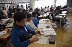 本校教職員の勤務時間は、815分から1645分となっていますが、本校教職員は、時間を惜しまずに一生懸命働いています。勤務外の超過時間が月45時間を、そして年360時間を超えることのないようにしていくのが国から示されている方針です。しかしながら、職員の中には、これを超えてしまう者もいる状況です。